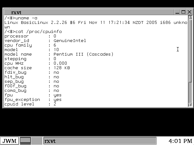 BasicLinux, an old but very fast distribution (from here).